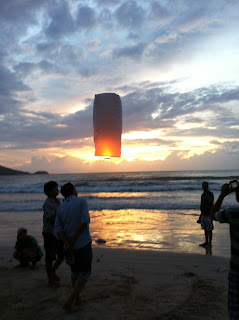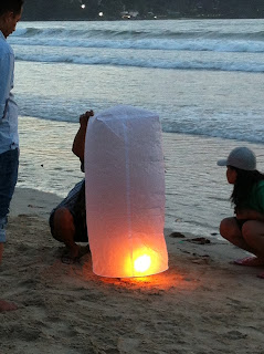 Well our time in Thailand has come to an end. We have had such an amazing time and have seen so many incredible sights. On one of our last nights we had the opportunity to do something we have dreamed of doing since we first set our sights on Thailand....release lanterns on the beach. We started releasing them at sunset and it was definitely a "jaw dropping" experience. Here are some photos from our last night on the beaches of Thailand.